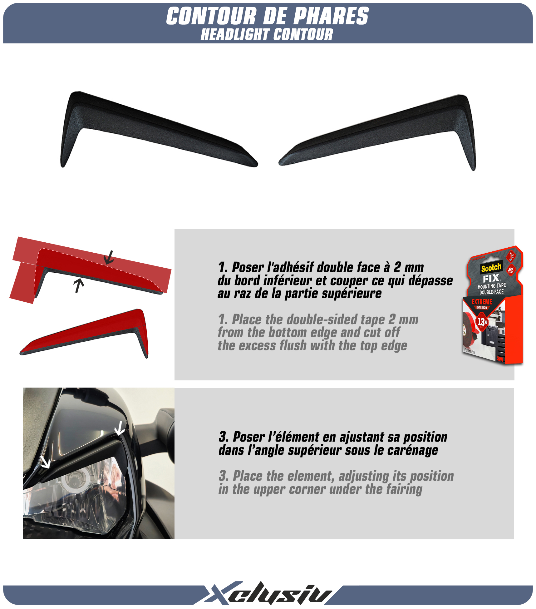 Conception solide de qualité, ces éléments soulignent le contour supérieur des phares et rendent le regard de votre Ryker encore plus agressif.
